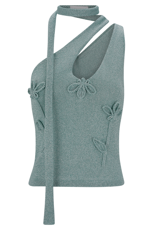 £89-33% Off Sale price £60Unit price / perLeone One Shoulder Metallic Knit Top - Aqua