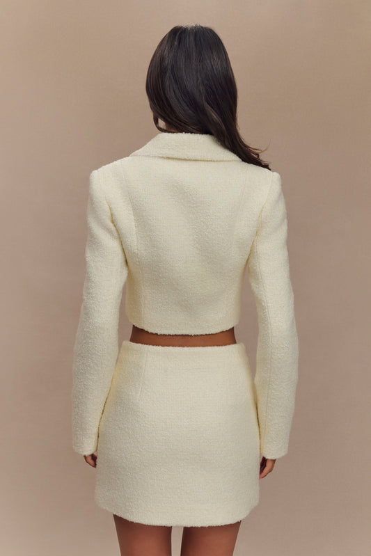 Mirelle Textured Boucle Cropped Long Sleeve Top - Ivory