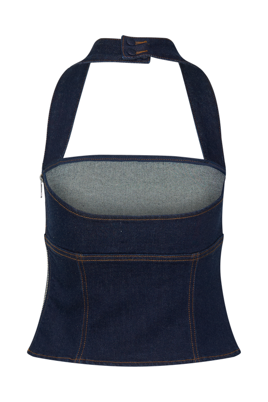 Regular price£65-38% Off Sale price £40Unit price / per20% OFF AT CARTDayna Denim Halter Top - Indigo Blue