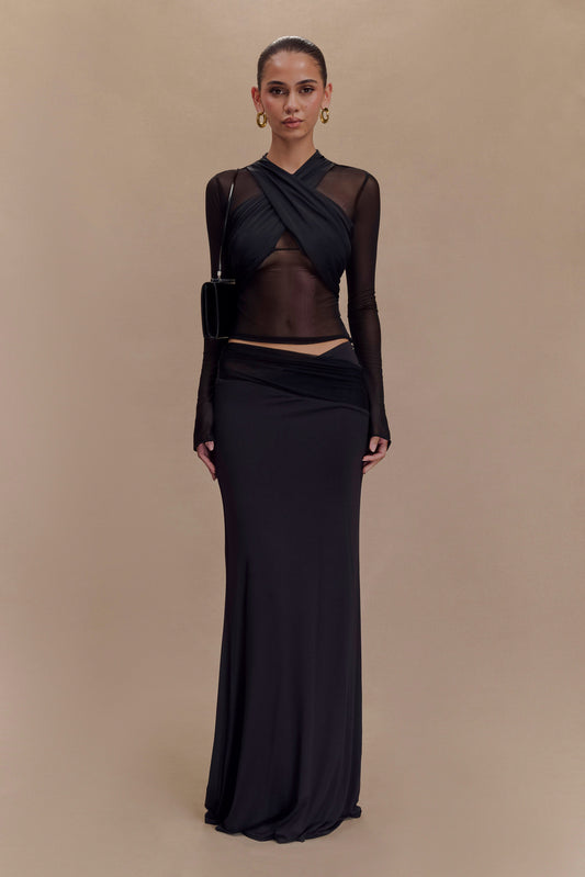 Tania Slinky And Mesh Long Sleeve Top - Black