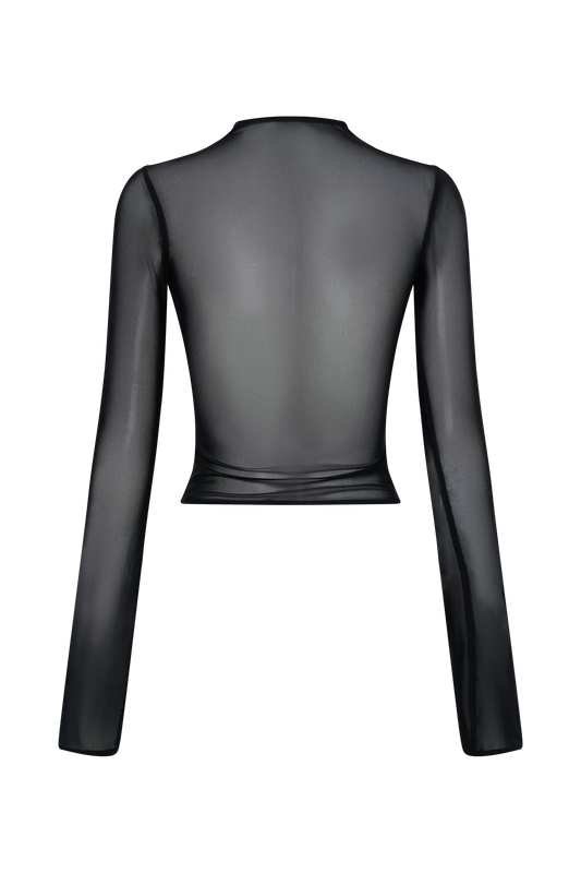 Boat Neck Sheer Mesh Top - Black