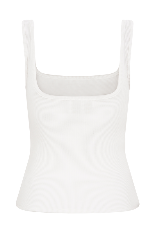 Aisling Ribbed Square Neck Sleeveless Top - Ivory