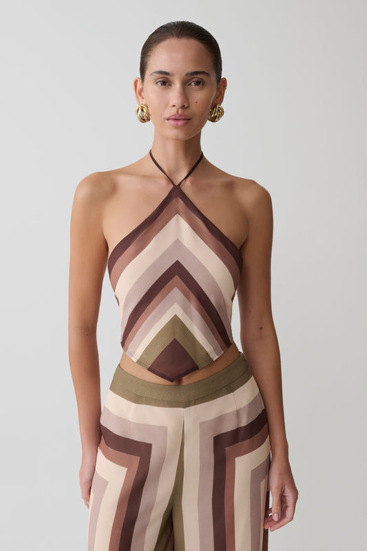 Thea Halter Chiffon Sleeveless Top - Multi Stripe