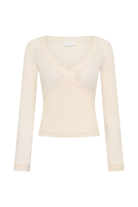 Gia Long Sleeve Satin Shirt - Buttermilk