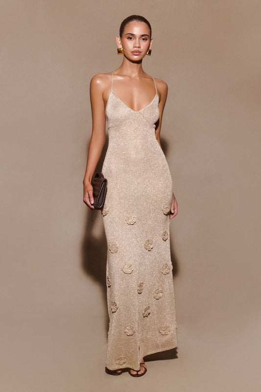 Regular price £95Unit price / per20% OFF AT CARTSuki Metallic Knit Maxi Dress - Gold