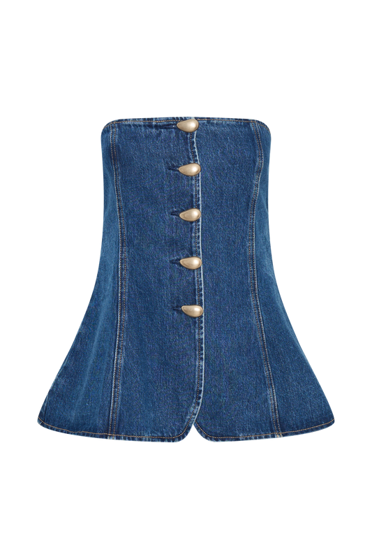 Regular price £69Unit price / per20% OFF AT CARTLennox Strapless Long Line Button Top - Dark Blue