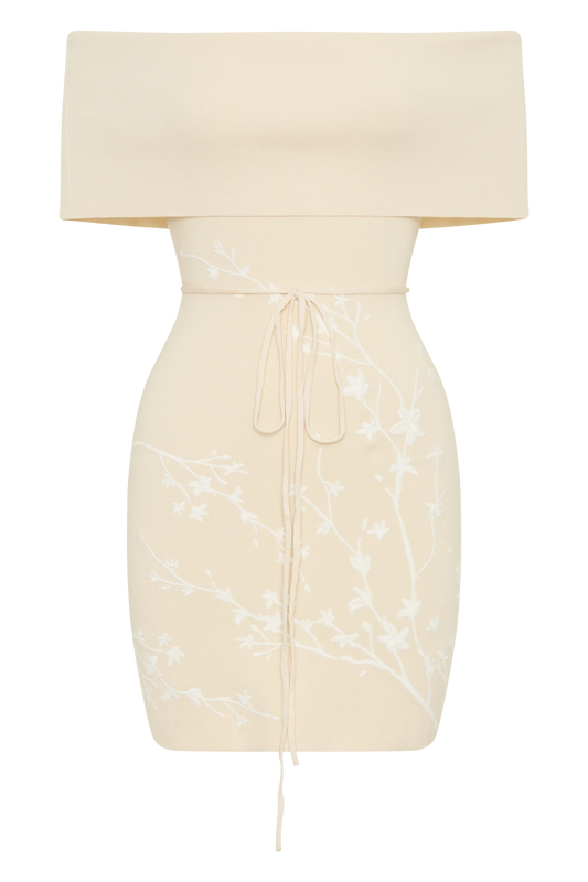 Regular price£79-46% Off Sale price £43Unit price / per25% Off At CartMallory Off Shoulder Embroidered Knit Mini Dress - Cream And Ivory