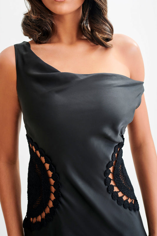 Aileen Ruffle Crochet Mini Dress - Steel Blue