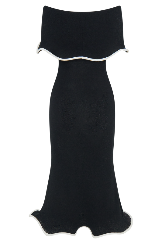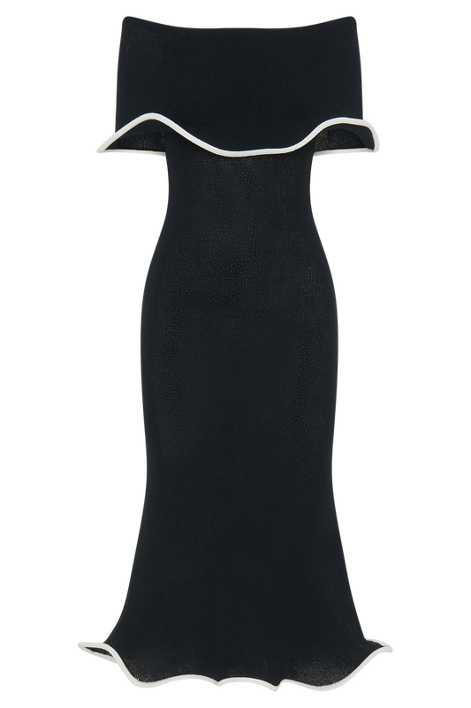 Molly Off Shoulder Knit Midi Dress - Black/White