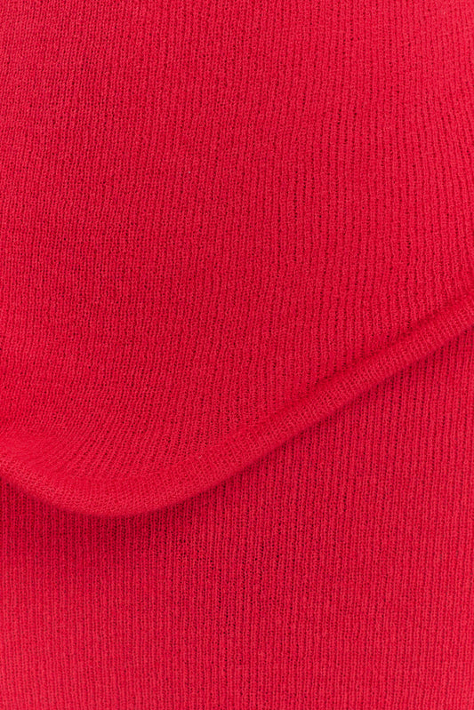 Scallop Knit Midi Skirt - Red