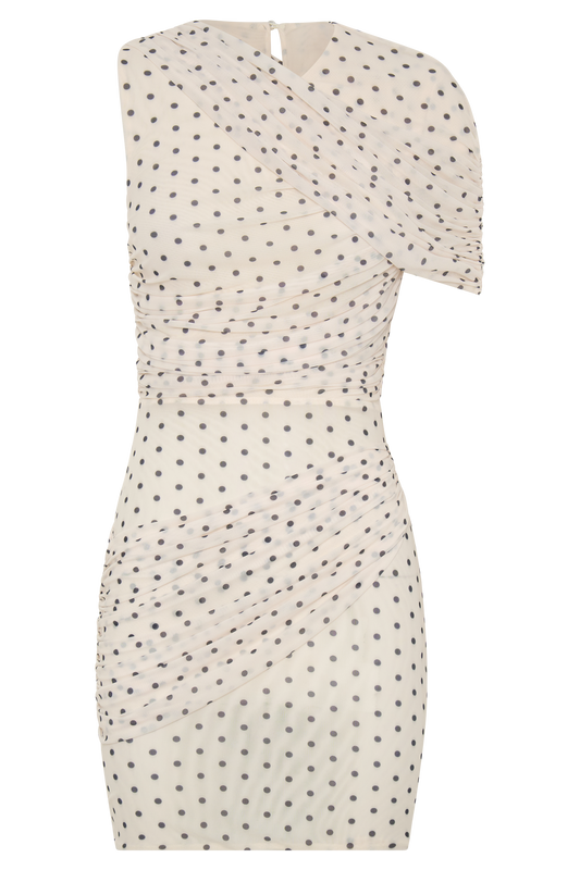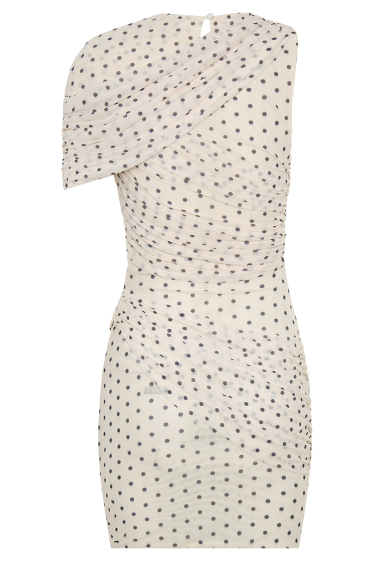 Adrienne One Shoulder Mesh Mini Dress - Polka Dot