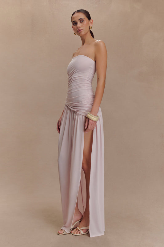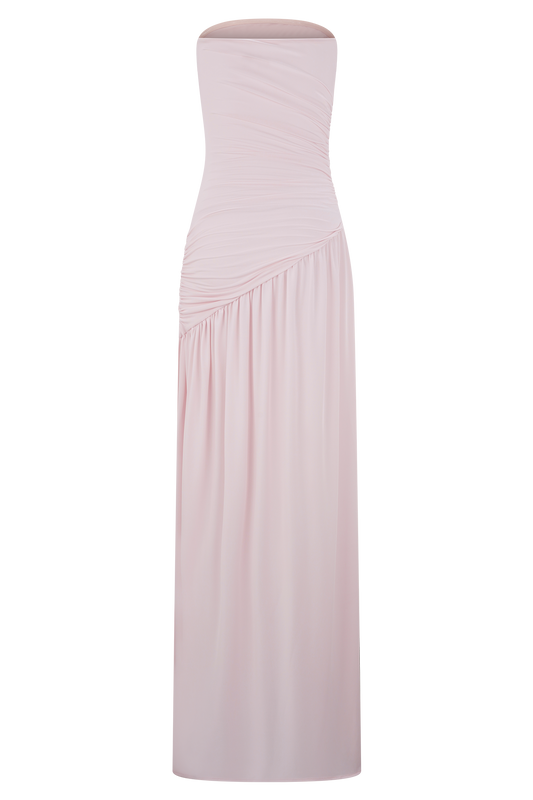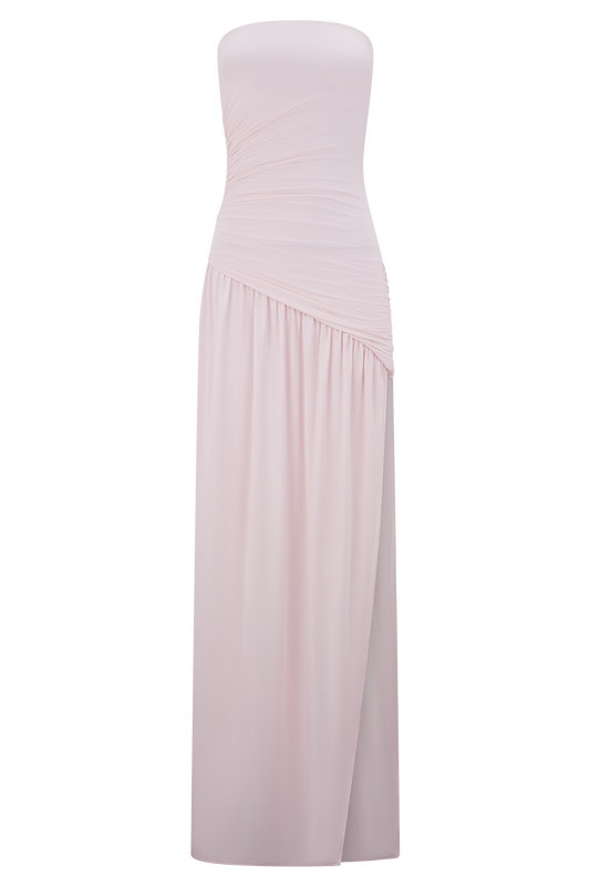 Bex Strapless Slinky Maxi Dress With Split - Pale Pink