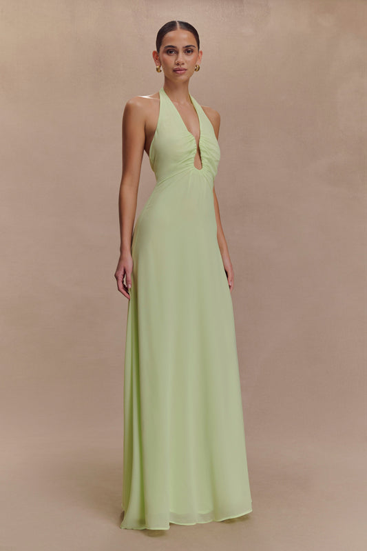Malakhai Chiffon Halter Maxi Dress - Pastel Green
