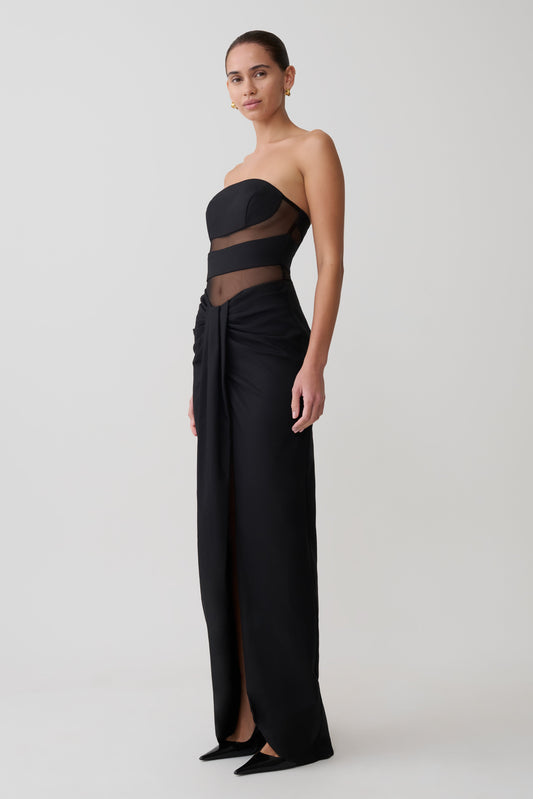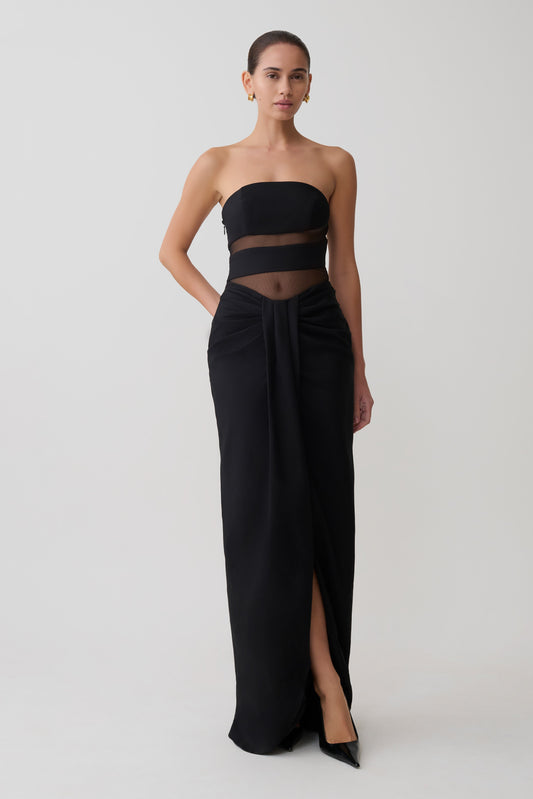 Adalyn One Shoulder Crepe Maxi Dress - Black