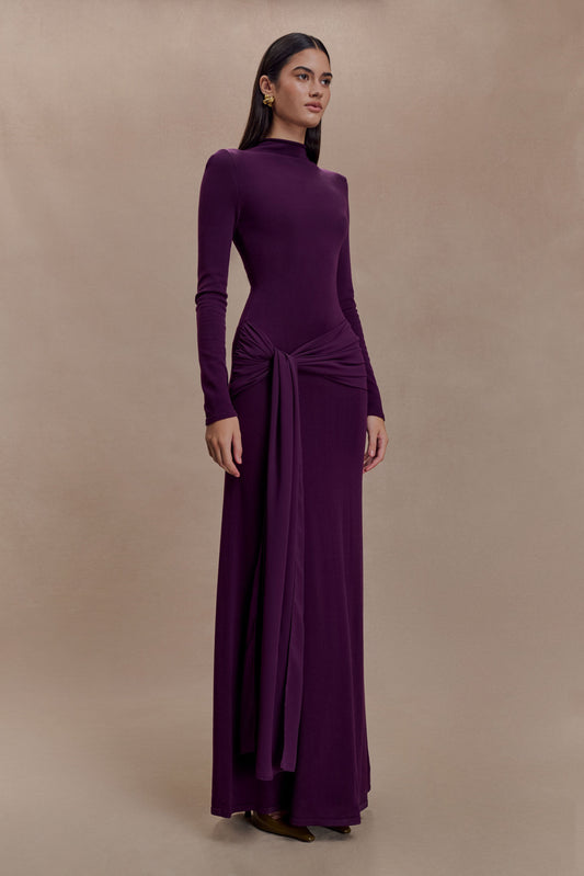 Grayson Knit Chiffon Maxi Dress - Plum
