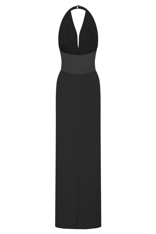 Bertie Peplum Halter Maxi Dress - Black