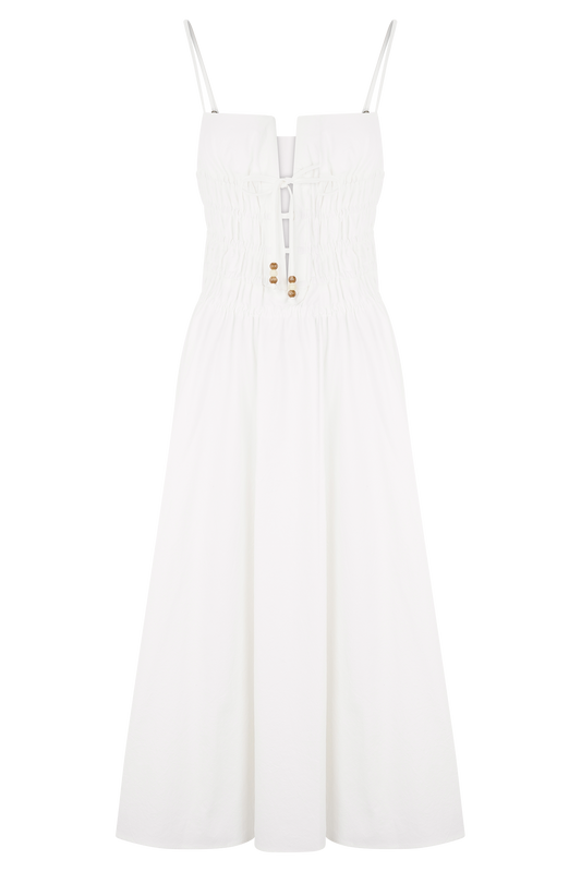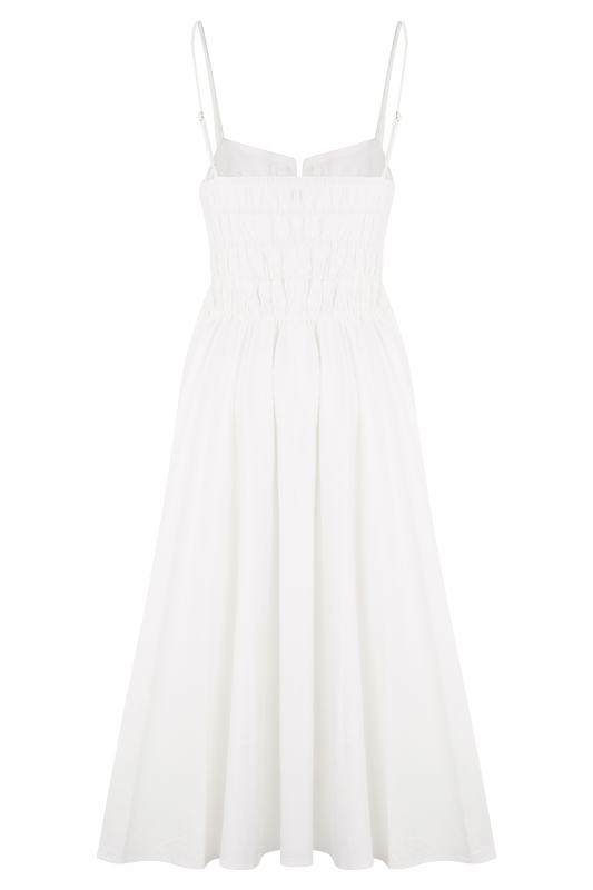 Elias Shirred Cotton Midi Dress - White