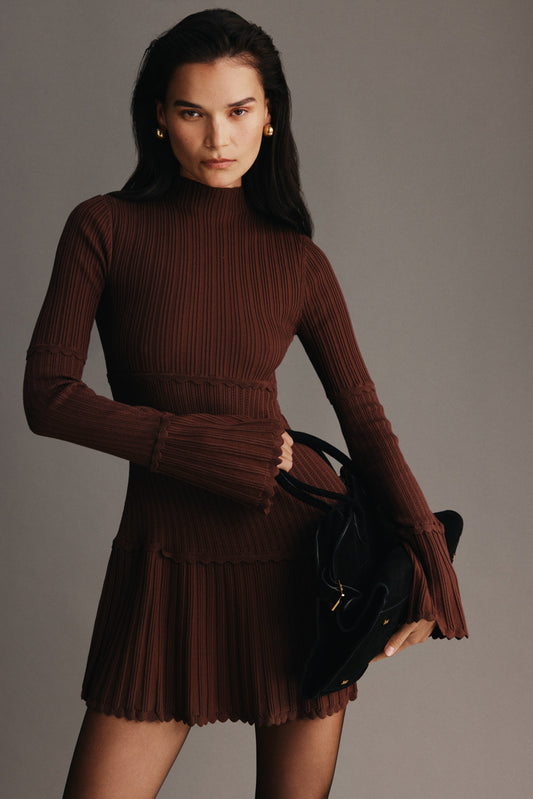 Adena Pointelle Knit Mini Dress - Chocolate