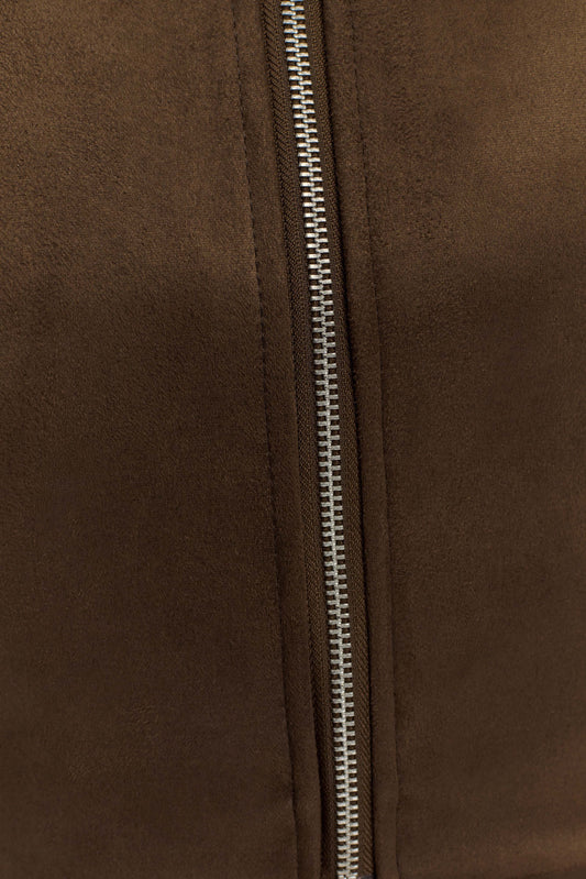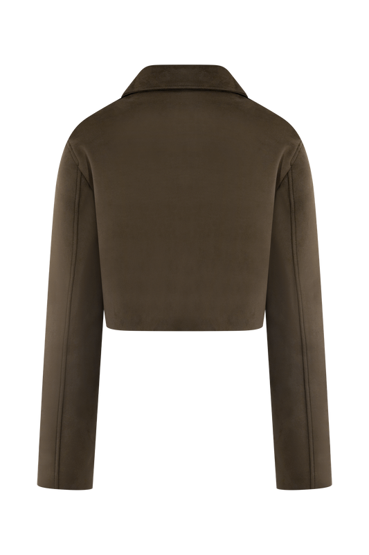 Faux Suede Collared Jacket - Chocolate