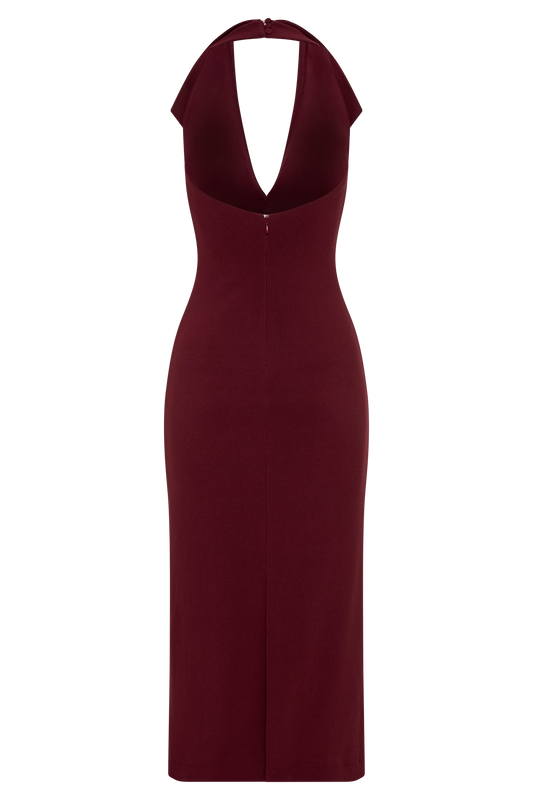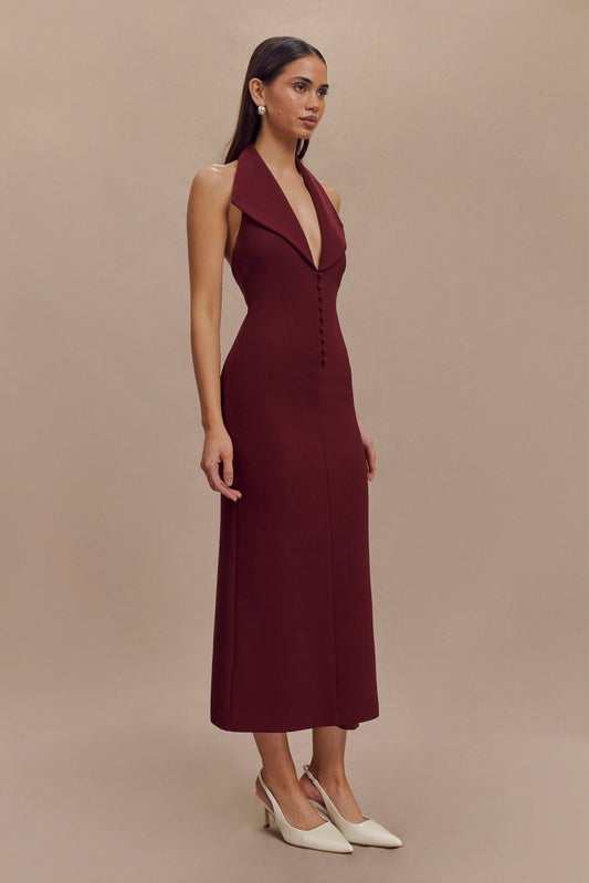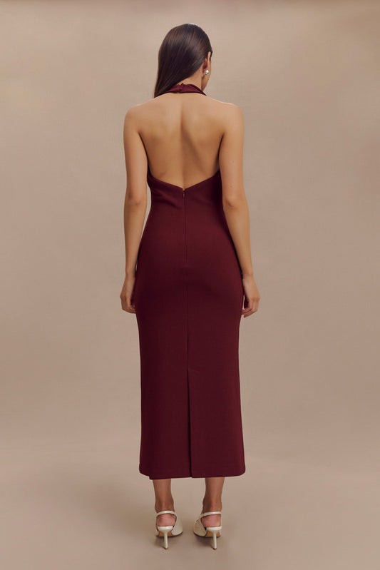 Annita Crepe Halter Midi Dress - Merlot