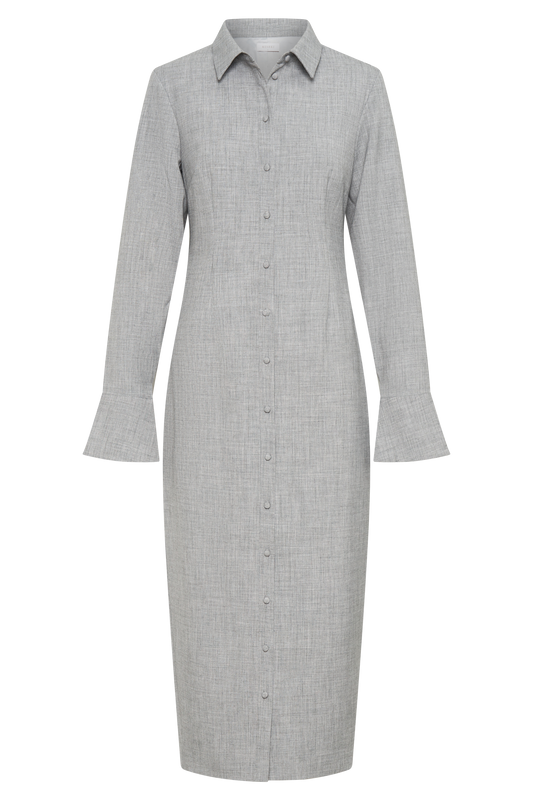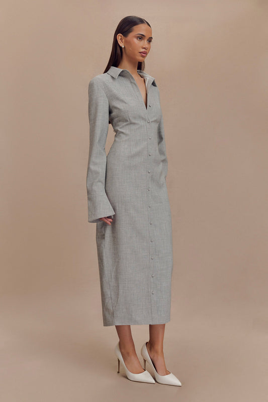 Dorian Fitted Shirt Midi Dress - Charcoal Marle