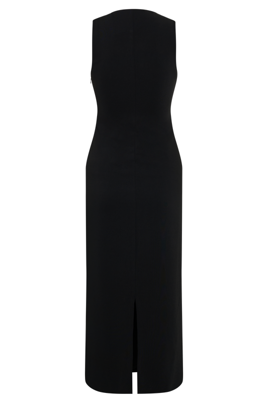 Norah Sleeveless Crepe Midi Dress - Black