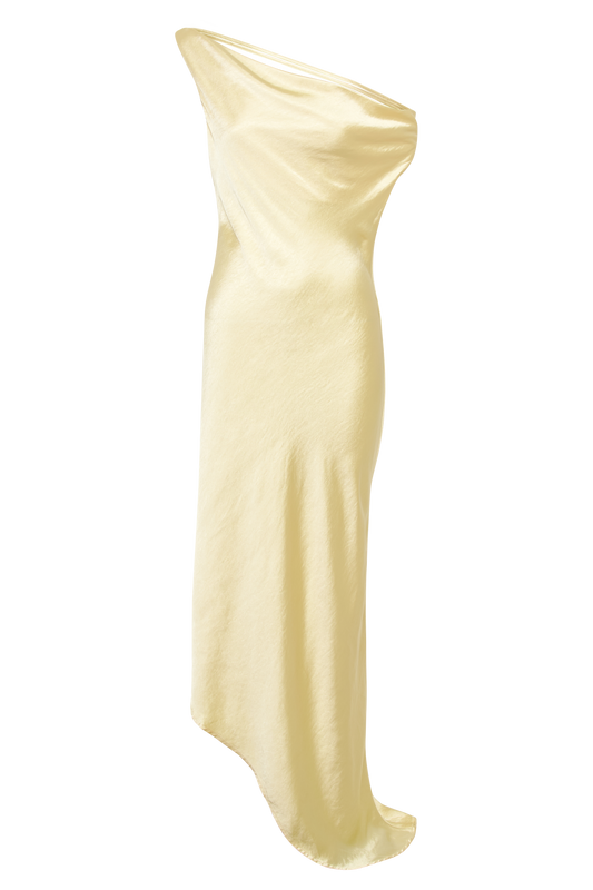Dalia Off Shoulder Satin Maxi Dress - Lemon
