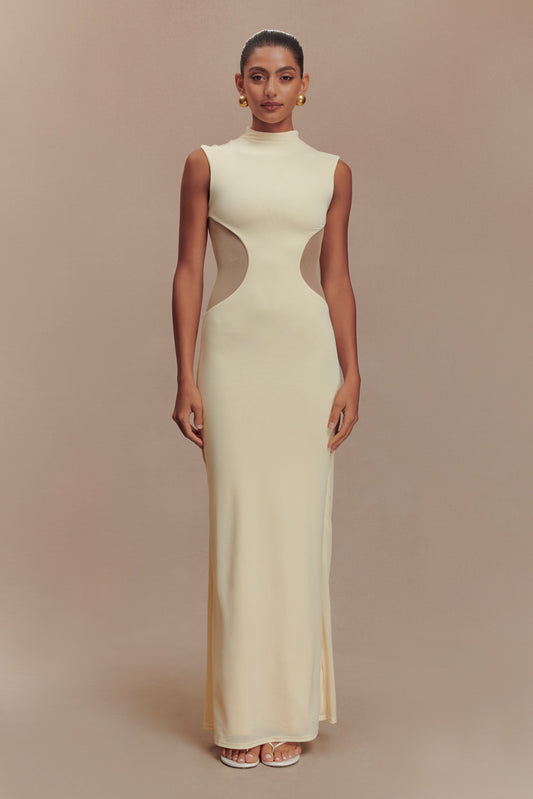 Gabrielle Slinky And Mesh Maxi Dress - Lemon