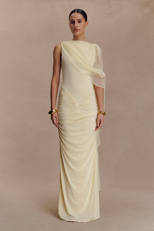 Stella Draped Slinky Maxi Dress - Pale Lemon