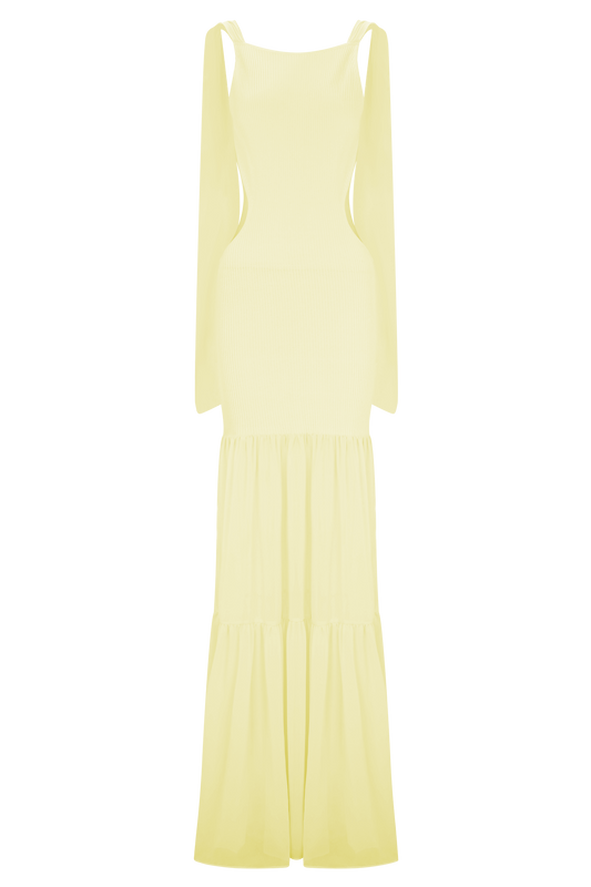 Haille Knit Chiffon Maxi Dress - Lemon