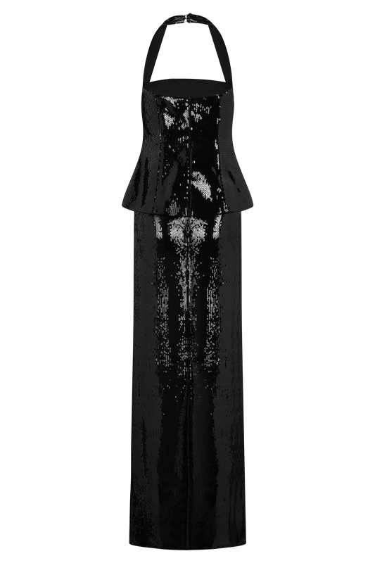 Bertie Sequin Peplum Halter Maxi Dress - Black