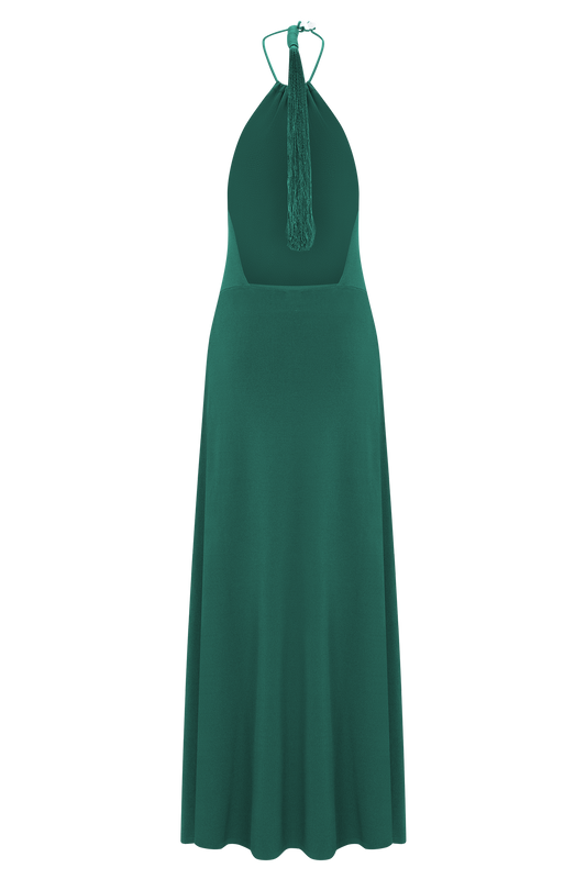 Halter Tassel Maxi Dress - Emerald