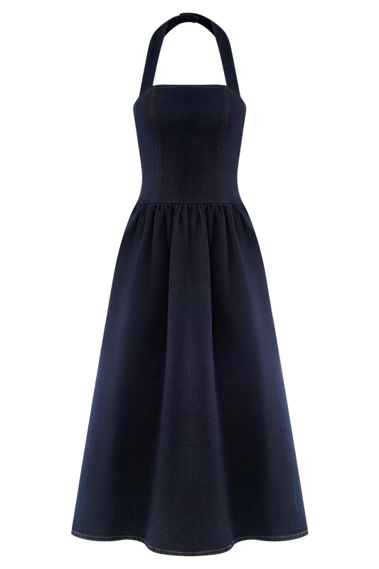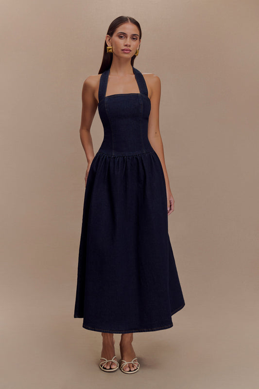 Caroline Denim Halter Midi Dress - Indigo Blue