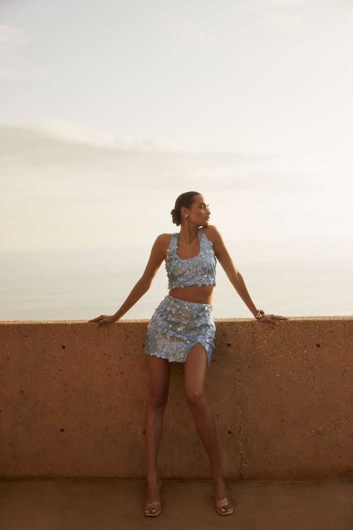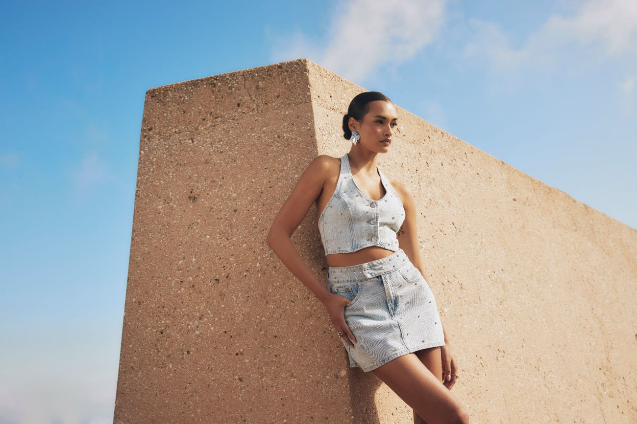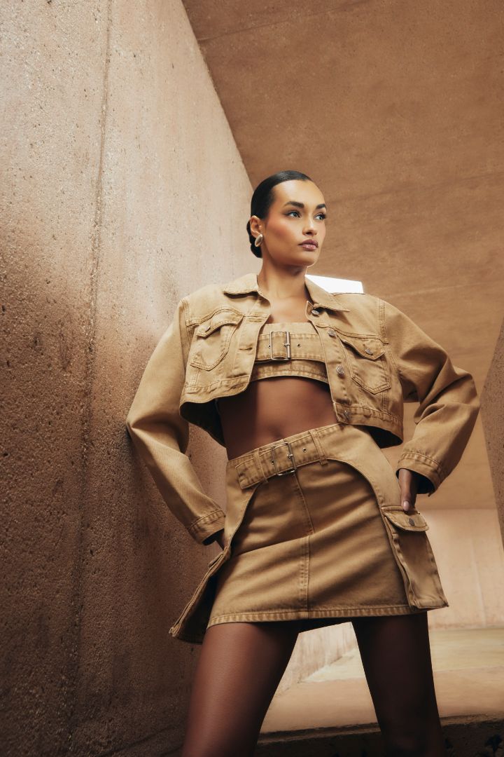 The double-denim combo is a classic. Why not? Denim is some of the most worn materials at Coachella, after all, and wearing a skirt and top is a cute way to flaunt this duo. Plus, they easily pair with Coachella-loving accessories like hats, boots, and chunky jewellery. To stand out, start off with the ROWENA Denim Buckle Bandeau and the ROWENA Denim Buckle Mini Skirt.
