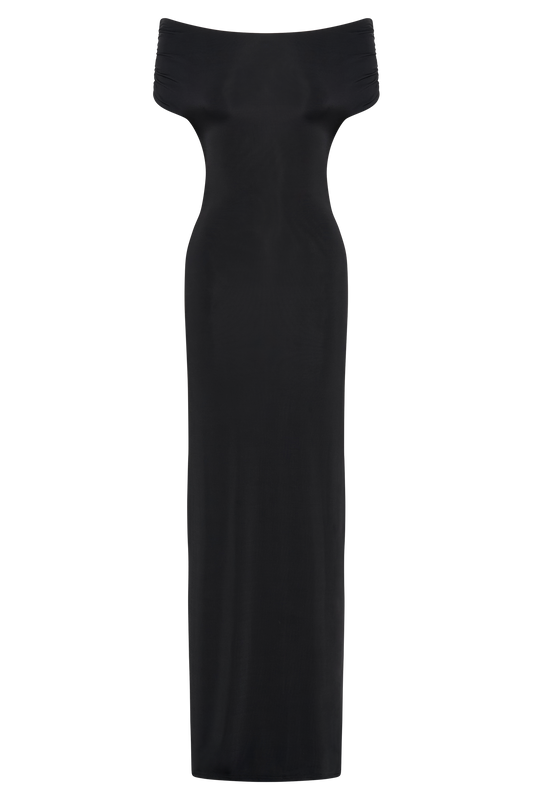Imogen Off Shoulder Slinky Maxi Dress - Black