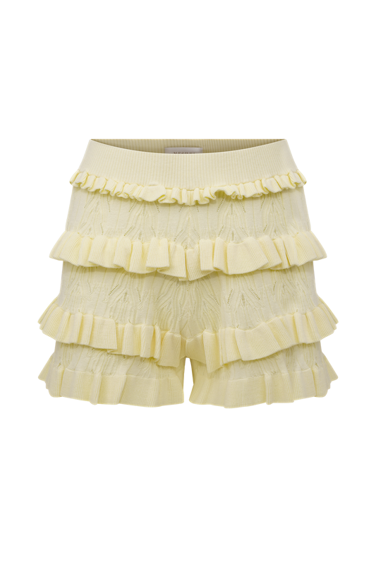 Shay Lace Ruffle Knit Midi Dress - Lemon