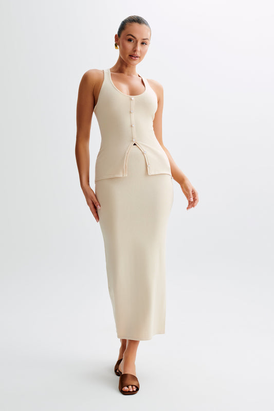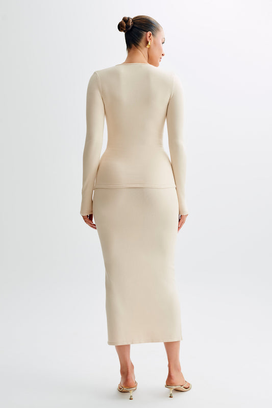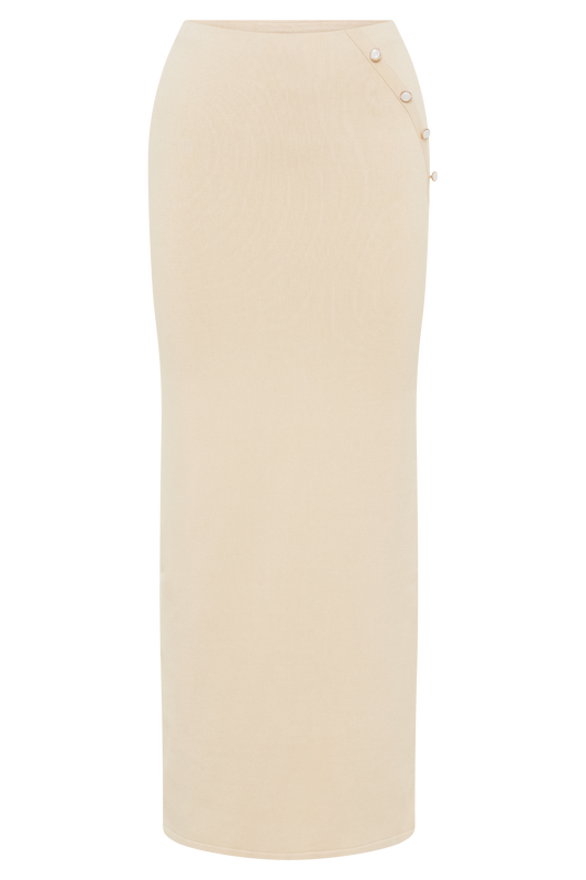 Venezia Linen Midi Skirt With Ruffle - Natural