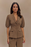 Opal Puff Sleeve Suiting Top - Cacao Brown