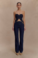 Tully Strapless Topstitch Denim Top - Indigo Blue