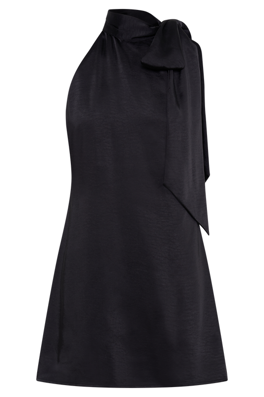 Halter Mini Dress With Tie - Black