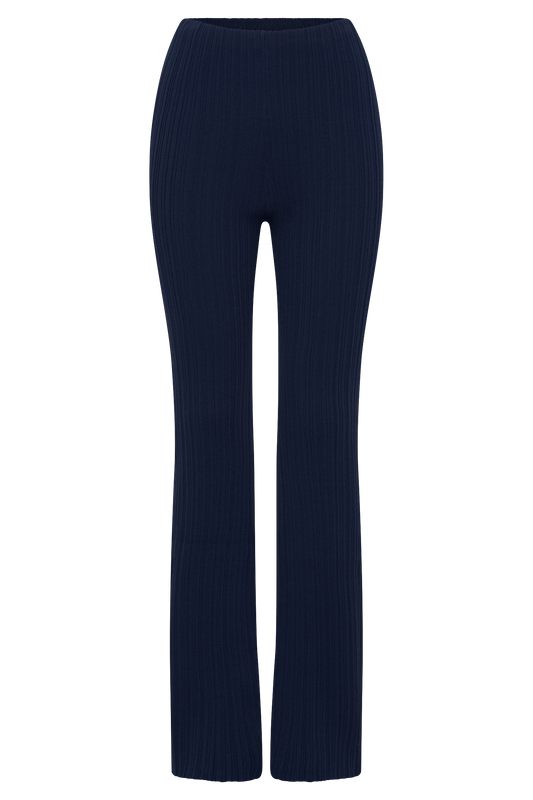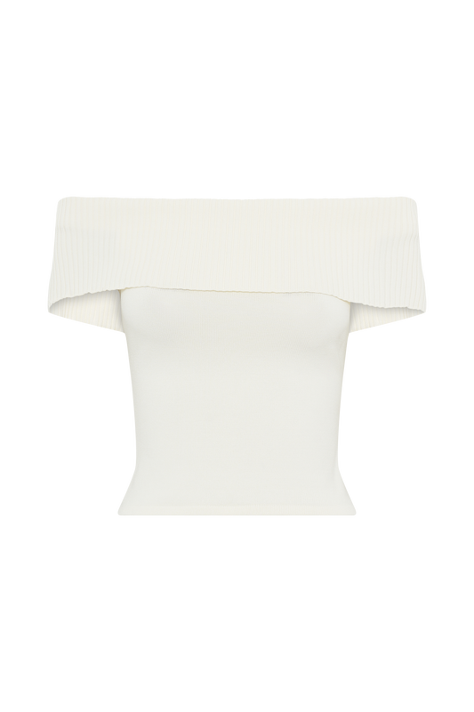 Chiara Off Shoulder Rib Knit Top - Navy