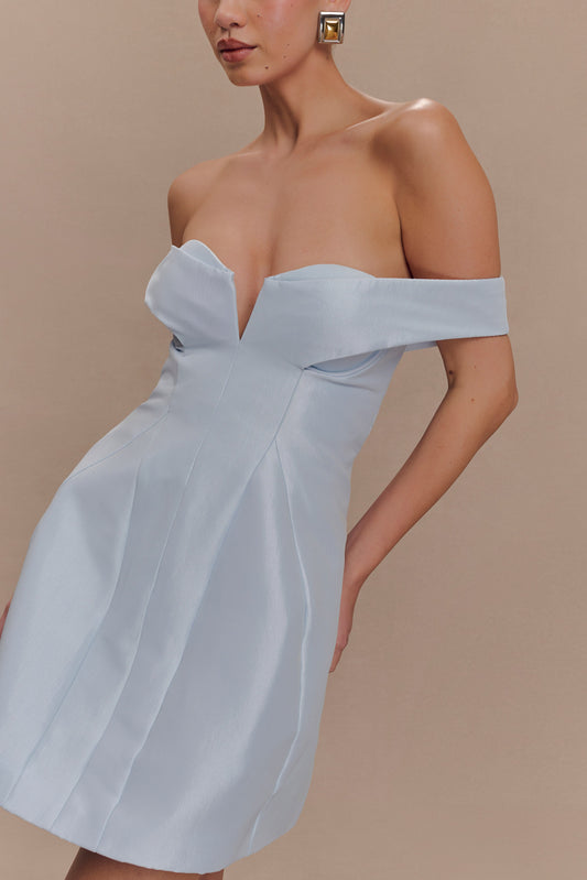 Diana Off Shoulders Mini Dress - Powder Baby Blue