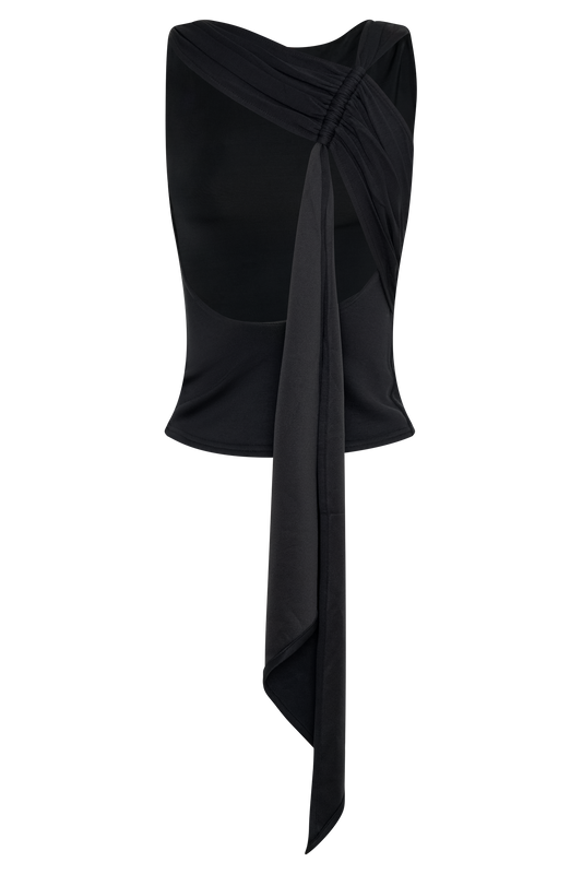 Catelyn Asymmetrical Scuba Jersey Top - Black