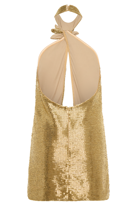 Eloise Hand Beaded Mini Dress - Gold Swirl Print
