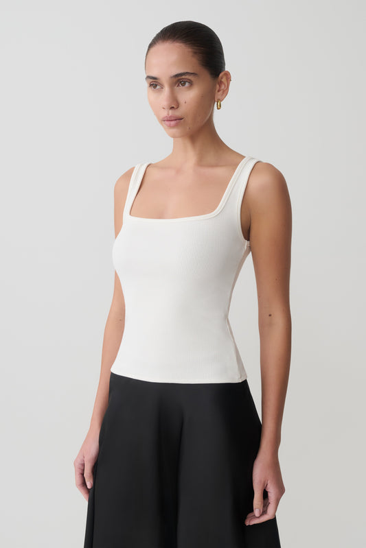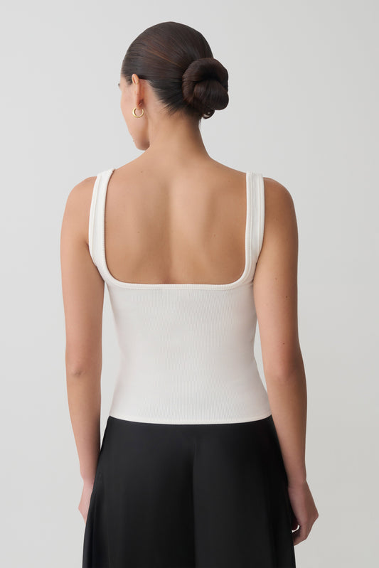 Aisling Ribbed Square Neck Sleeveless Top - Ivory