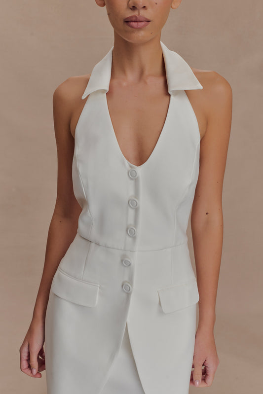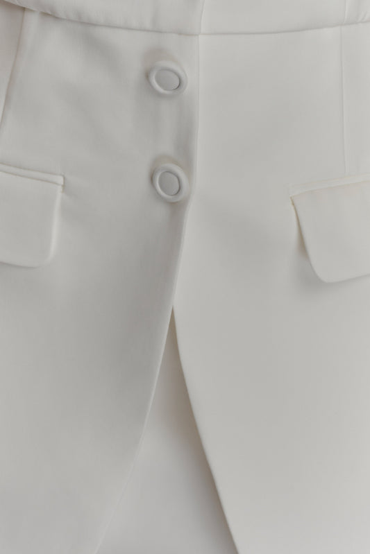Vera Suiting Split Front Midi Skirt - Ivory Stone