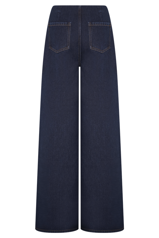 Jen Wide Leg Flare Denim Jeans - Dark Blue