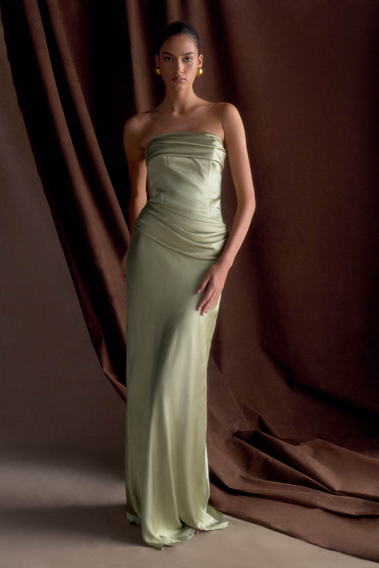 Lilly Sweetheart Satin Maxi Dress - Sage