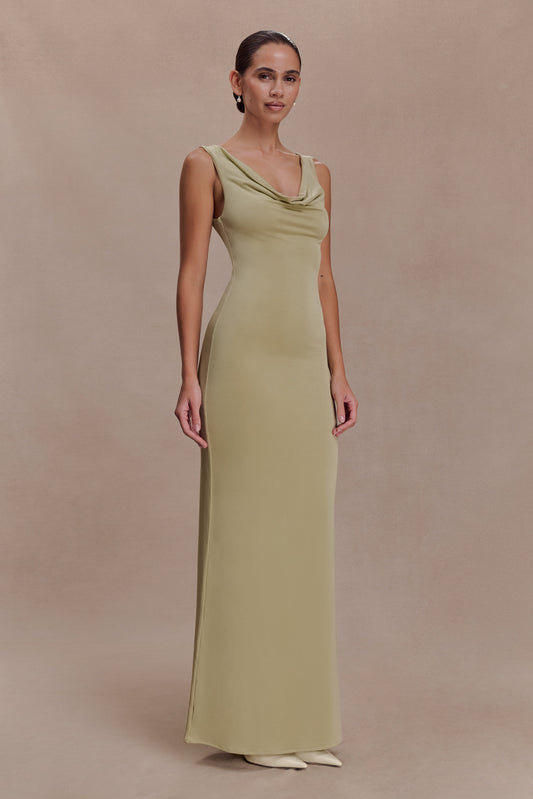 Esther Iridescent Satin Cowl Maxi Dress - Sage