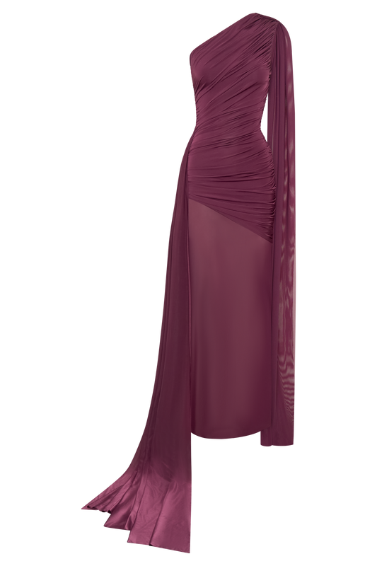 Lyla Asymmetrical Satin Maxi Dress - Plum